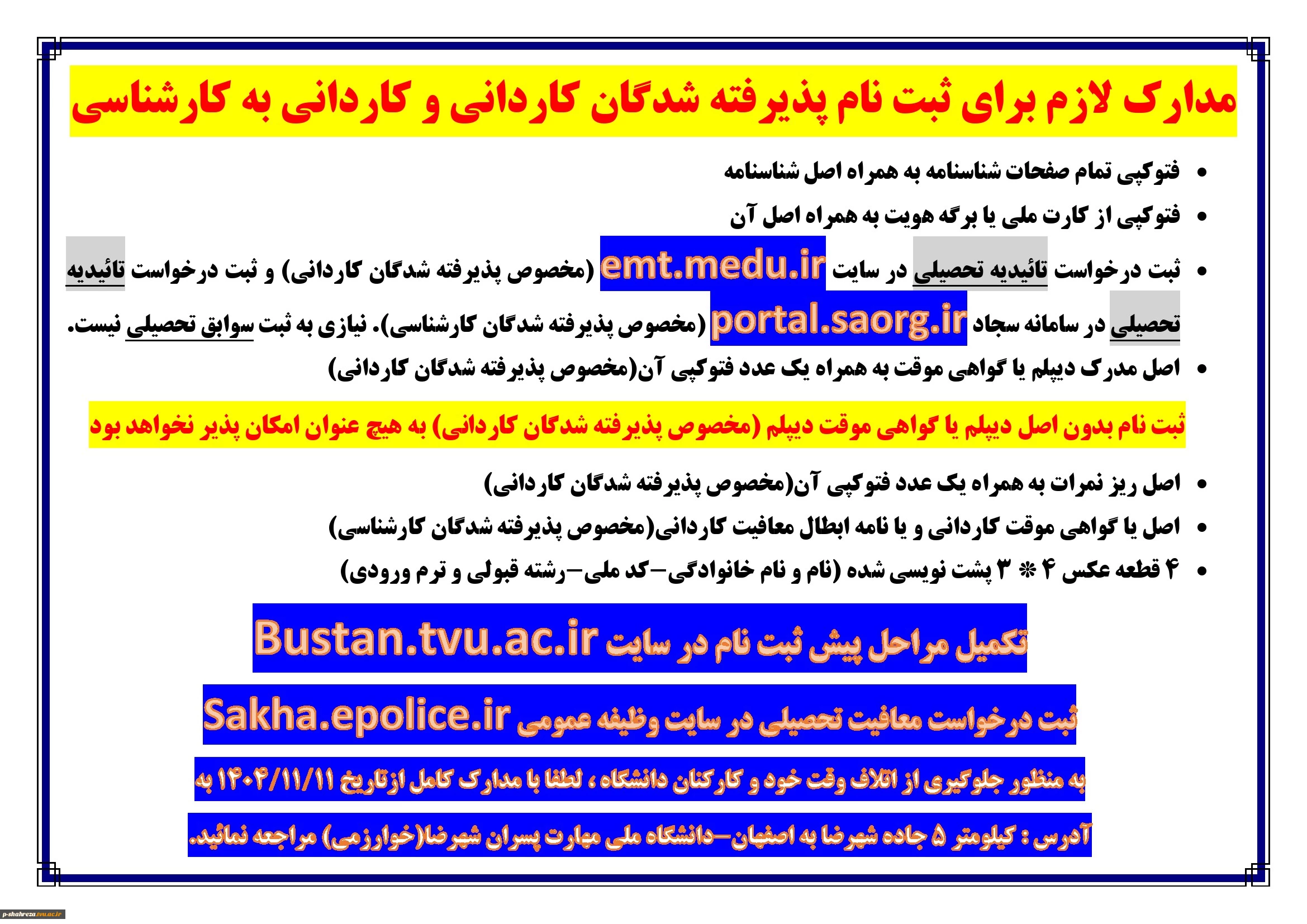 امتیاز دهید : اطلاعیه ثبت نام پذیرفته شدگان کاردانی و کاردانی به کارشناسی سال 1404 2 چهارشنبه 17 دی 1404 ساعت 9:43