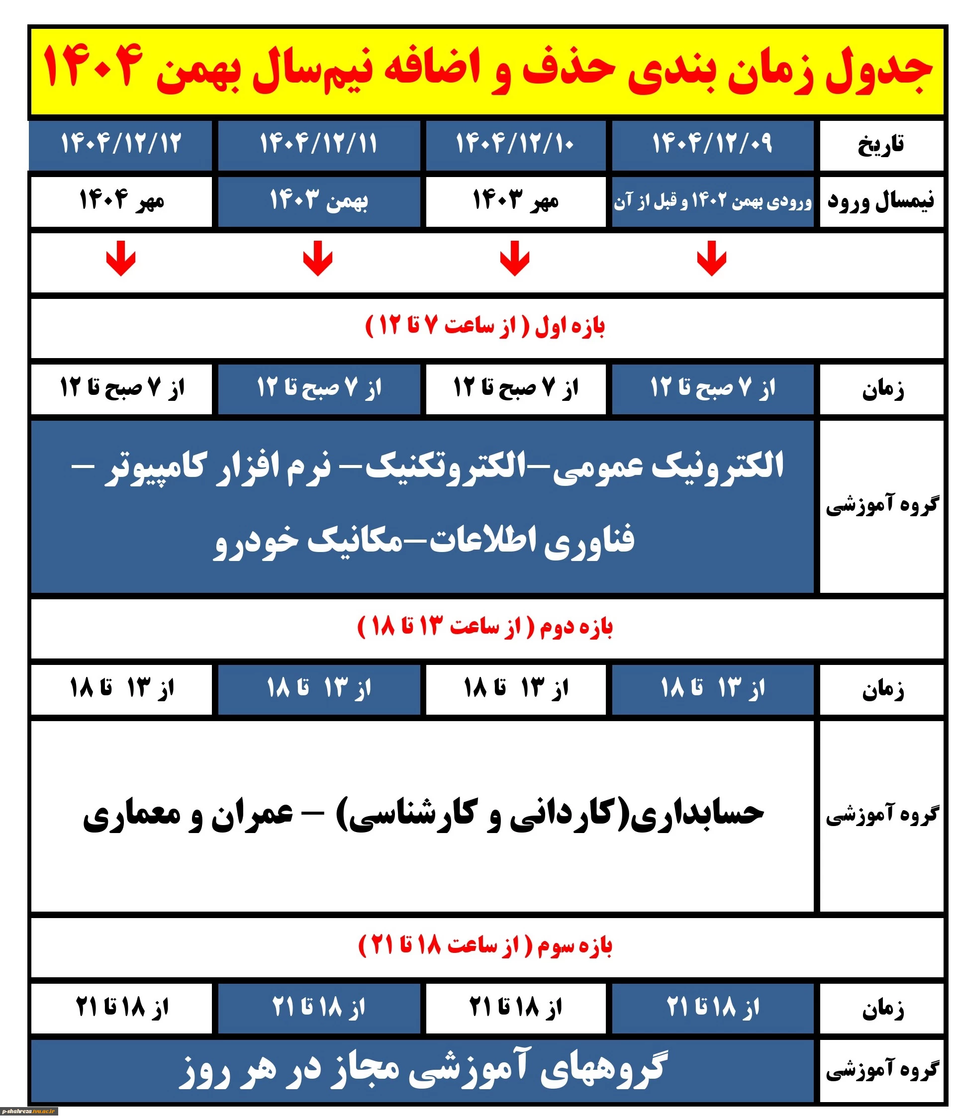 برنامه حذف و اضافه نیمسال بهمن 1404